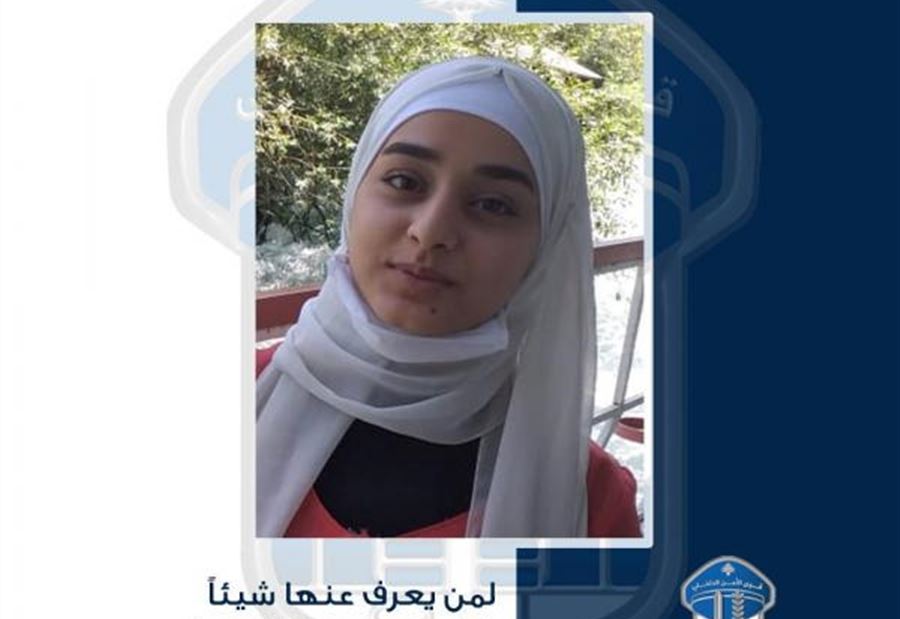 عممت المديريـة العامة لقوى الأمن الداخلي ـ شعبة العلاقـات العامة, في بلاغ, صورة القاصر المفقودة: فرح محمود حصيرة (مواليد عام 2006، سورية) الّتي غادرت بتاريخ 03/2/2021 منزل ذويها الكائن في محلّة المنية ولم تعُد لغاية تاريخه.