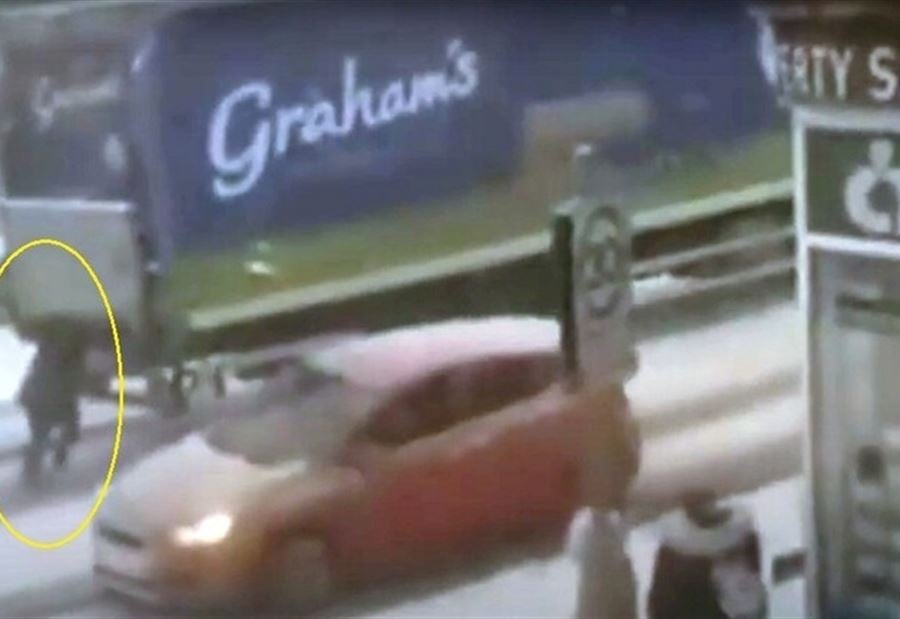 ونشرت صحيفة "ديلي ميل" البريطانية مقطع فيديو يظهر المرأة وهي تدفع الشاحنة الضخمة، التي كانت تتأرجح على الطريق نحو تلة صغيرة، بسبب العاصفة الثلجية.
