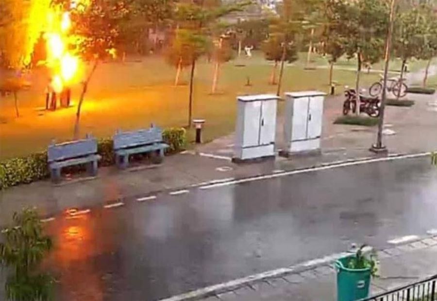 وبحسب التسجيل الفيديوي، فقد وقعت الحادثة مساء أول أمس الجمعة، عندما كان الرجال الأربعة يقفون تحت شجرة في الحديقة بسبب الأمطار الغزيرة.