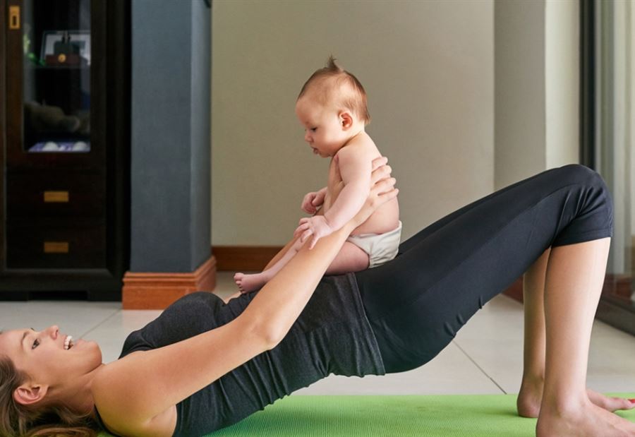 ملاحظة: احرصي على استشارة طبيبك قبل ممارسة الرياضة بعد الولادة, ابدئي دائماً بتمارين بسيطة وتجنبي الأنشطة التي تضع الكثير من الضغط على عضلات البطن ومفاصل الورك.