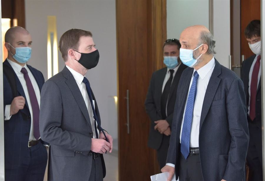 التقى رئيس حزب "القوّات اللبنانيّة" سمير جعجع، اليوم الخميس في المقر العام للحزب في معراب، مساعد وزير الخارجية الاميركية للشؤون السياسية ديفيد هيل ترافقه السفير الأميركيّة في لبنان دوروثي شيا، في حضور رئيس جهاز العلاقات الخارجيّة في الحزب الوزير السابق ريشار قيومجيان. وقد تباحث المجتمعون في آخر التطورات السياسيّة في البلاد والمنطقة.