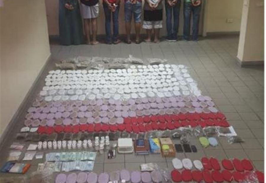وبتفتيش الشقتين تم ضبط كمية كبيرة من المخدرات المخزنة داخلهما كالتالي: حوالي 77 كغ من مادة حشيشة الكيف , 3763 حبة كبتاغون, 1796 حبة ترامادول , 14 غرام من مادة الكوكايين, 42 حبة مخدرة من انواع مختلفة, حوالي360غ من مادة الماريجوانا, ميزان حساس عدد 2، 3 سكاكين تستخدم في توضيب المخدرات، و9هواتف خلويّة ومبلغ مالي قدره 100 مليون ل.ل و 206 دولار أميركي.