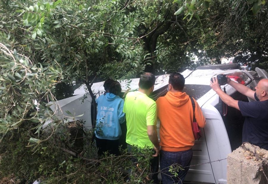 وسارع مسعفو الصليب الأحمر إلى المكان وعمدوا إلى إخراج المصابين من السيارة.