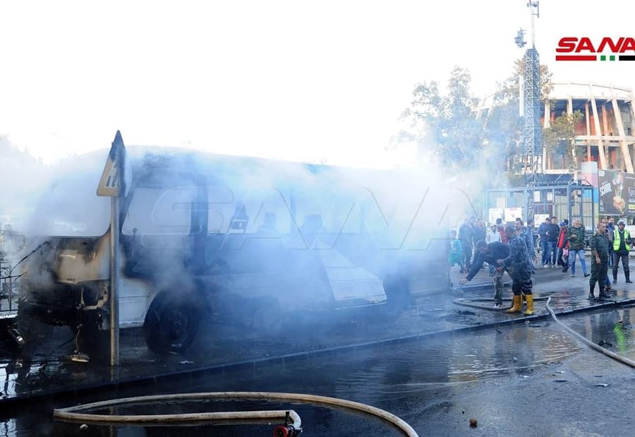 أفادت الوكالة السورية للأنباء "سانا" بوقوع تفجير إرهابي بعبوتين ناسفتين أثناء مرور حافلة تابعة للجيش عند جسر الرئيس في العاصمة دمشق أسفر عن 13 قتيلا و3جرحى.