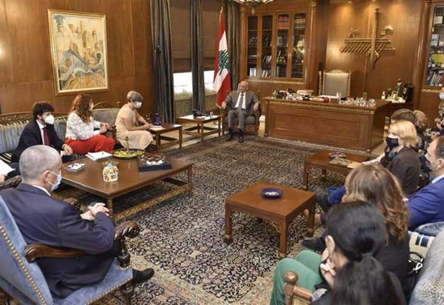 عرض رئيس مجلس النواب نبيه بري, الاوضاع العامة في لبنان والمنطقة والعلاقات البرلمانية بين مجلس النواب والبرلمان الاوروبي خلال استقباله في مقر الرئاسة الثانية في عين التينة، أعضاء اللجنة البرلمانية للعلاقات مع المشرق في البرلمان الاوروبي، في حضور سفير الاتحاد الاوروبي رالف طراف.