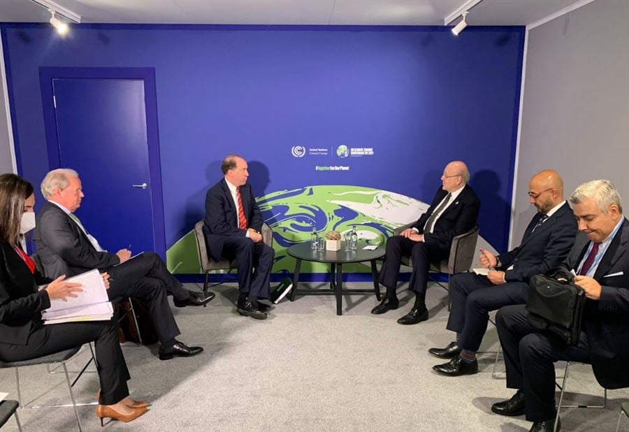 عقد رئيس مجلس الوزراء نجيب ميقاتي, اجتماعاً مع رئيس مجموعة البنك الدولي دايفيد مالباس, في اطار "مؤتمر الامم المتحدة السادس والعشرين للأطراف في الاتفاقية الإطارية بشأن التغير المناخي في مدينة غلاسكو في اسكتلندا".