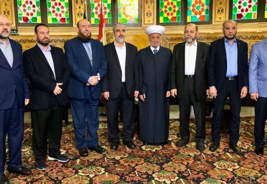 استقبل مفتي الجمهورية اللبنانية الشيخ عبد اللطيف دريان في دار الفتوى، وفدا من حركة المقاومة الإسلامية "حماس" برئاسة رئيس المكتب السياسي للحركة في الخارج خالد مشعل، الذي قال بعد اللقاء: "تشرفنا بلقاء سماحته في باكورة زيارة لبنان العزيز من أجل أن نكون بين أبناء شعبنا، وفي ذكرى انطلاقة حماس الـ34، وأيضا للتواصل مع المسؤولين في لبنان العزيز".