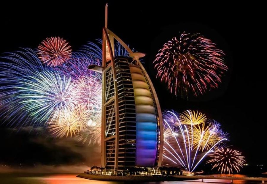 وفي العالم العربي، يصل عيد رأس السنة أولا إلى سلطنة عمان تليها الإمارات، فباقي الدول العربية تباعا حتى يصل آخرها، موريتانيا.