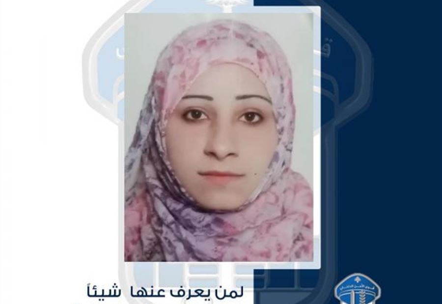 صـدر عـن المديريـة العامة لقوى الأمن الداخلي ـ شعبة العلاقـات العامـة تعميم جاء فيه، "تُعمِّم المديرية العامة لقوى الأمن الدّاخلي، بناءً على إشارة القضاء المختص، صورة المفقودة: