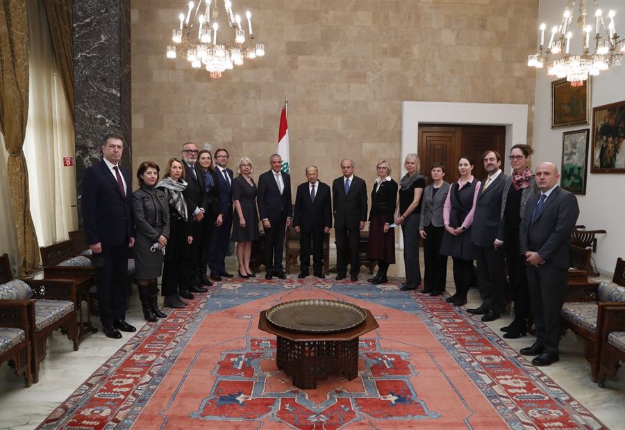 موقف الرئيس عون جاء في خلال استقباله قبل ظهر اليوم الجمعة في قصر بعبدا وفد "الاتحاد الاوروبي" برئاسة السفير رالف طراف، وضم السفراء والقائمين بأعمال دول : بلجيكا، بلغاريا، المانيا، الدنمارك، اليونان، اسبانيا، فنلندا، فرنسا، هنغاريا، ايطاليا، هولندا، بولونيا، رومانيا، سلوفاكيا والسويد.