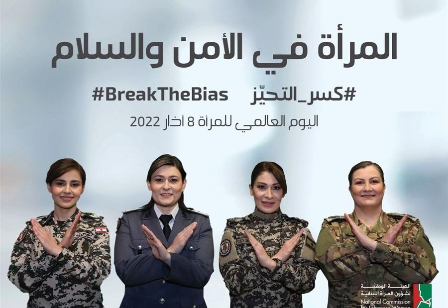 بمناسبة اليوم العالمي للمرأة في 8 آذار، تنضمّ الهيئة الوطنية لشؤون المرأة اللبنانية إلى الحملة العالمية التي تحمل شعار BreakTheBias# وتطلق حملة توعوية بعنوان " المرأة في الأمن والسلام"، # كسر_التحيّز.