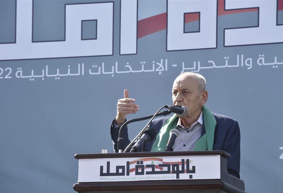 أكد رئيس مجلس النواب نبيه بري، خلال اطلاق الماكينة الانتخابية للائحة "الأمل والوفاء" في دائرة الجنوب الثانية، من المصيلح، أن "مستقبل لبنان ومصيره وهويته وثوابته وسبل الخروج من الأزمة مرتبط بنتائج هذه الدورة الانتخابية في كل لبنان".