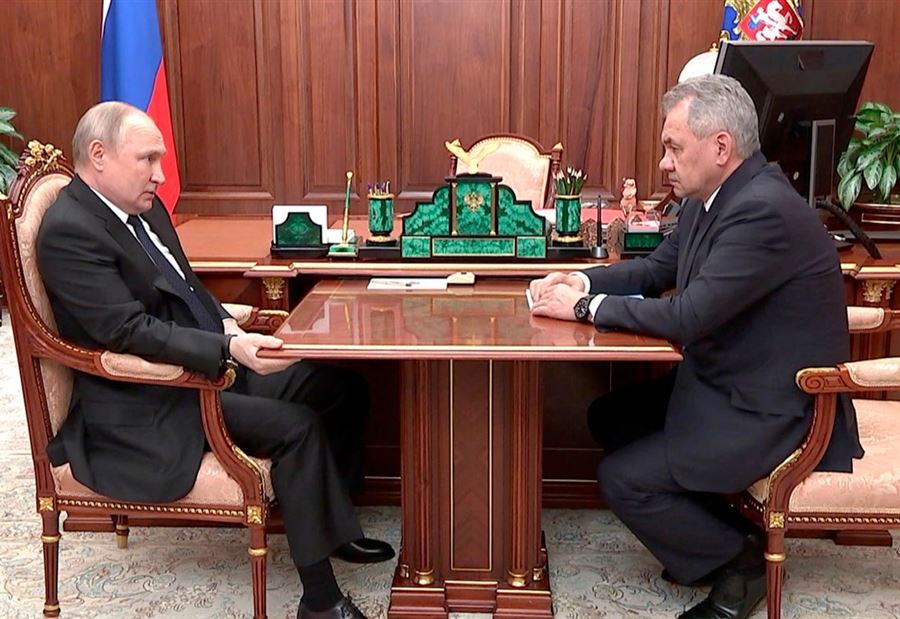 وظهر بوتين خلال استقباله وزير الدفاع، سيرغي شويغو، بوجه منتفخ ويمسك بحافة الطاولة بشدة طوال المقطع الذي تصل مدته 12 دقيقة، ونشره الكرملين.