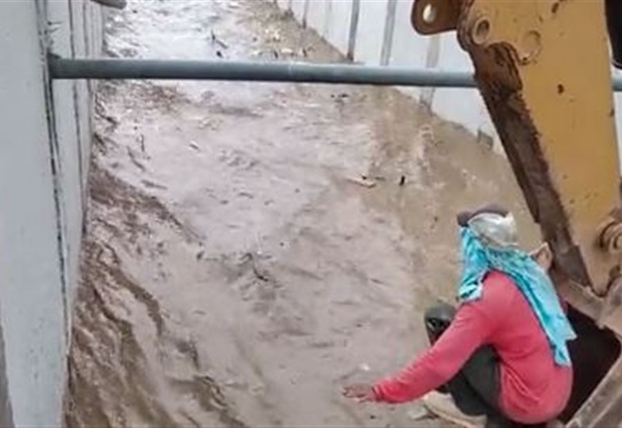 وخلال لحظات، هبطت ذراع الجرافة بالعامل إلى قلب المجرى المائي، وبدا وكأن العامل في مهمة عمل، قبل أن يظهر من بعيد كلب على قيد الحياة تدفعه المياه السريعة.