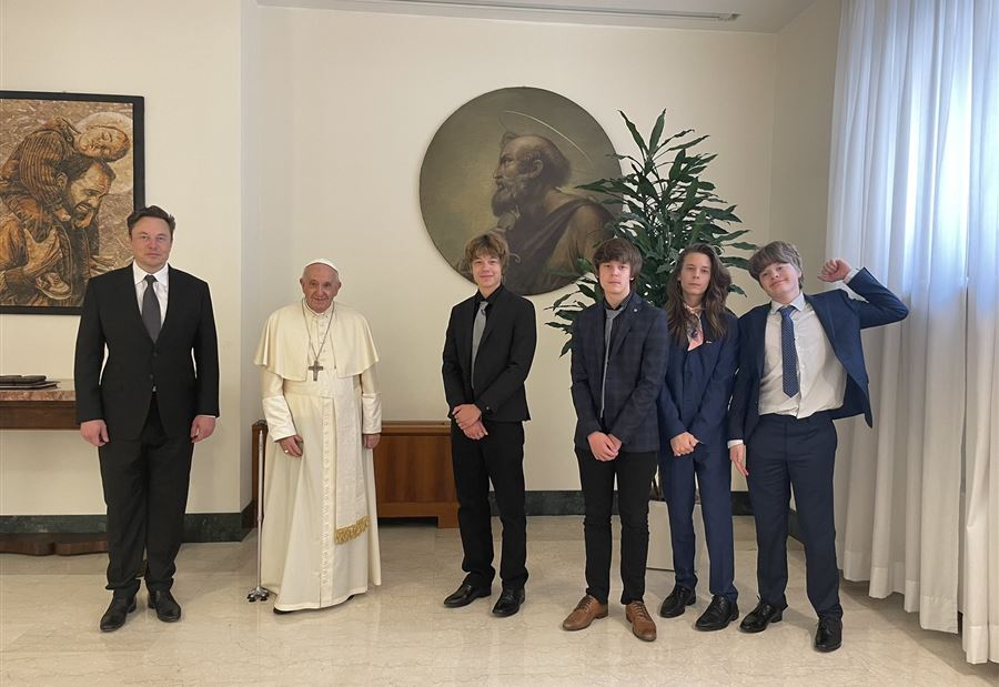 ونشر إيلون ماسك صورة تجمعه وأنباءه مع البابا فرانسيس عبر "تويتر"، ليل الجمعة السبت، وكتب تعليقا مرفقا بها: "تشرفت بلقاء البابا أمس".