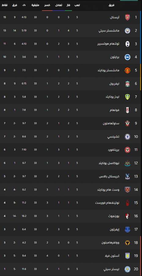 ورفع الفوز رصيد مانشستر يونايتد إلى 9 نقاط من 5 مباريات في المركز الخامس، في حين يتصدر ارسنال جدول الترتيب برصيد 15 نقطة، مقابل 13 لمانشستر سيتي، و11 لتوتنهام، و10 نقاط لبرايتون.