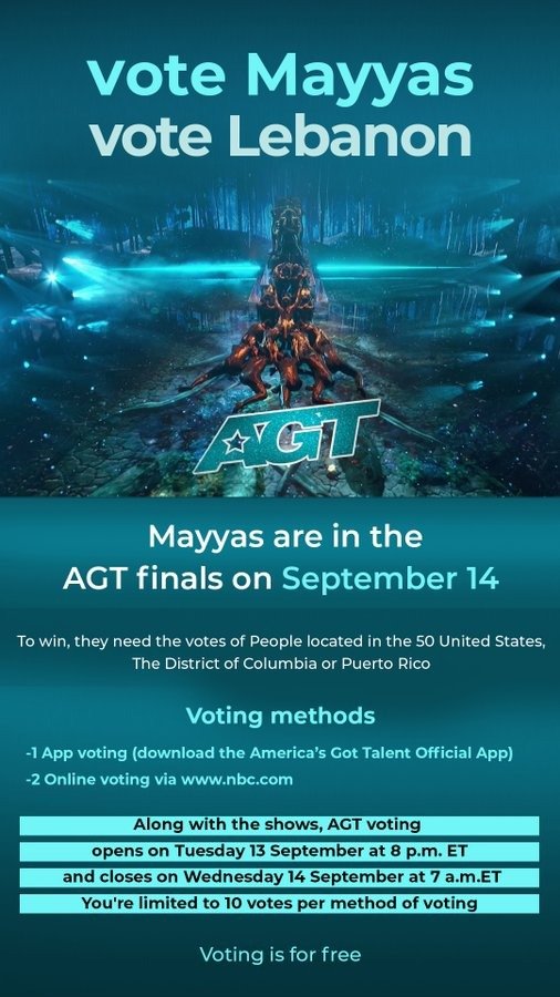فرقة مياس بحاجة لتصويتنا الذي بدأ صباح الأربعاء الساعة 3 بتوقيت بيروت. وينتهي عند الساعة الثانية ظهراً بتوقيت بيروت.