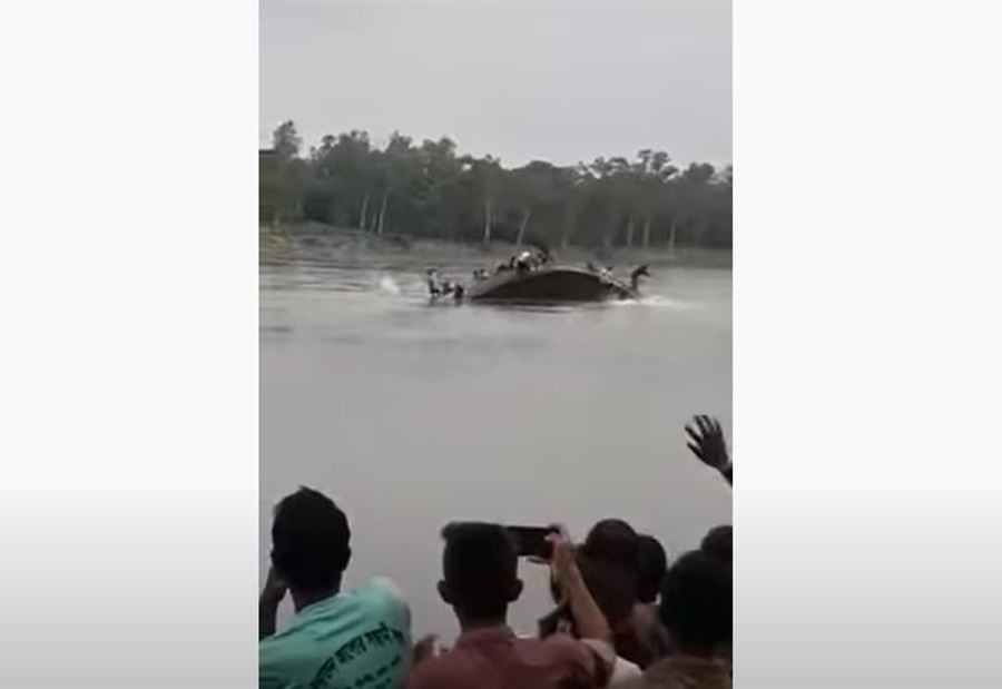 في حين أظهر مقطع صور بهاتف محمول بثه إعلام محلي القارب المكتظ ينقلب فجأة، ما أدى إلى سقوط الركاب في النهر الموحل.