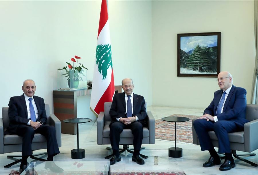 وقد جمع رئيس الجمهورية العماد ميشال عون في قصر بعبدا, رئيس مجلس النواب نبيه بري ورئيس الحكومة المكلّف نجيب ميقاتي للبحث في ملف ترسيم الحدود البحرية.