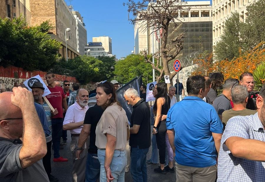 وطالب المعتصمون بـ"إلغاء التعاميم الصادرة عن المصرف التي تقتطع أكثر من 70٪ من أموال المودعين".