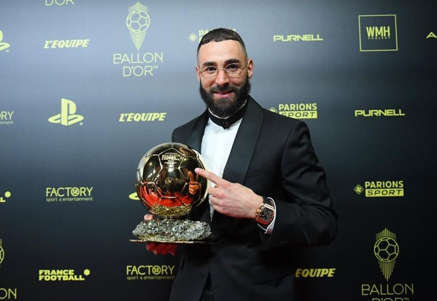 وجاء بنزيمة بالمركز الأول، كما كان متوقعا، بعد موسم استثنائي قاد خلاله فريقه ريال مدريد لتحقيق لقبي دوري أبطال أوروبا والدوري الإسباني.