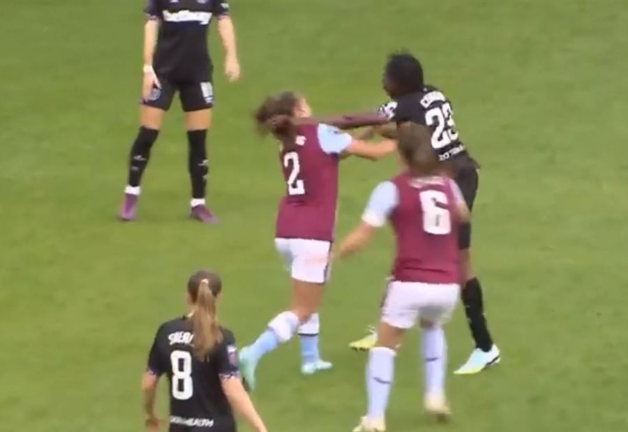 وأظهر مقطع فيديو التحامًا بين لاعبة ويست هام هاوا سيسوكو، وساري مايلينغ من أستون فيلا، لتوجه بعدها الأولى لكمات وصفعات للاعبة المنافسة.