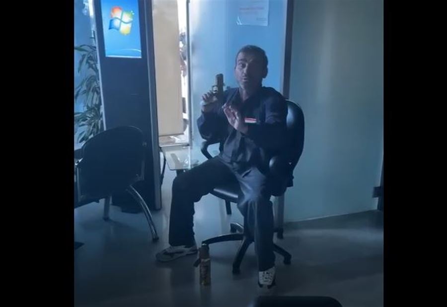 في آخر التطورات لحادثة إقتحام بنك الإعتماد فرع الحازمية، ظهر مقتحم المصرف علي الساحلي وهو غاضب وجالس على كرسي داخل البنك.