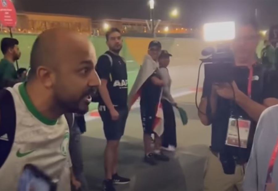 ويظهر الفيديو لحظات رد المشجع السعودي على الصحفي الإسرائيلي الذي وقف صامتا، وساند المشجعون المتواجدون بجانب السعودي حديثه، مرددين شعار التأكيد على دعم فلسطين.