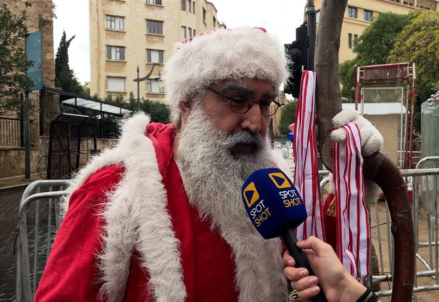 قبل أيام من عيد الميلاد الذي يحل هذا العام بدون رئيس للجمهورية، ظهر ميلاد أبو ملهب من أمام مجلس النواب بملابس "بابا نويل"، حاملاً بيديه ميداليات باللون الذهبي.