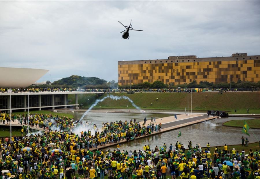 واقتحم مئات من مناصري الرئيس البرازيلي السابق اليميني، جايير بولسونارو، الأحد، مقرات السلطات الرئيسية في العاصمة، مبنى الكونغرس والمحكمة العليا وقصر بلانالتو الرئاسي، متسببين بكثير من الأضرار.