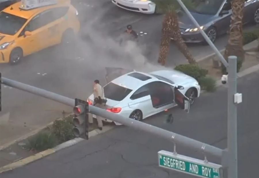 This afternoon around 4:37 pm, our @LVMPDCCAC officer and a bystander pulled a driver from a burning car near Las Vegas Boulevard and Siegfried and Roy Drive. pic.twitter.com/t1kCG43a8w