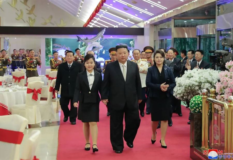 وحسب صور من وكالة الأنباء المركزية الكورية، حضر كيم جونغ أون العرض مع زوجته ري سول جو وابنته جو آي. وظهر في صور أخرى محاطا بجنرالاته وهو يسير على سجادة حمراء، لتفقد صفوف الجنود المسلحين بالحراب وتحيتهم بينما كانت صواريخ وقوات تمر من بعيد.