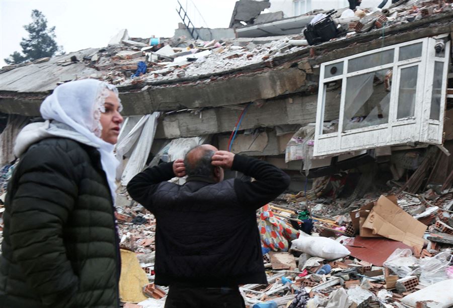 وفجر الاثنين، ضرب زلزال جنوب تركيا وشمال سوريا بلغت قوته 7.7 درجات، أعقبه آخر بعد ساعات بقوة 7.6 درجات ومئات الهزات الارتدادية العنيفة، ما خلف خسائر كبيرة بالأرواح والممتلكات في البلدين.