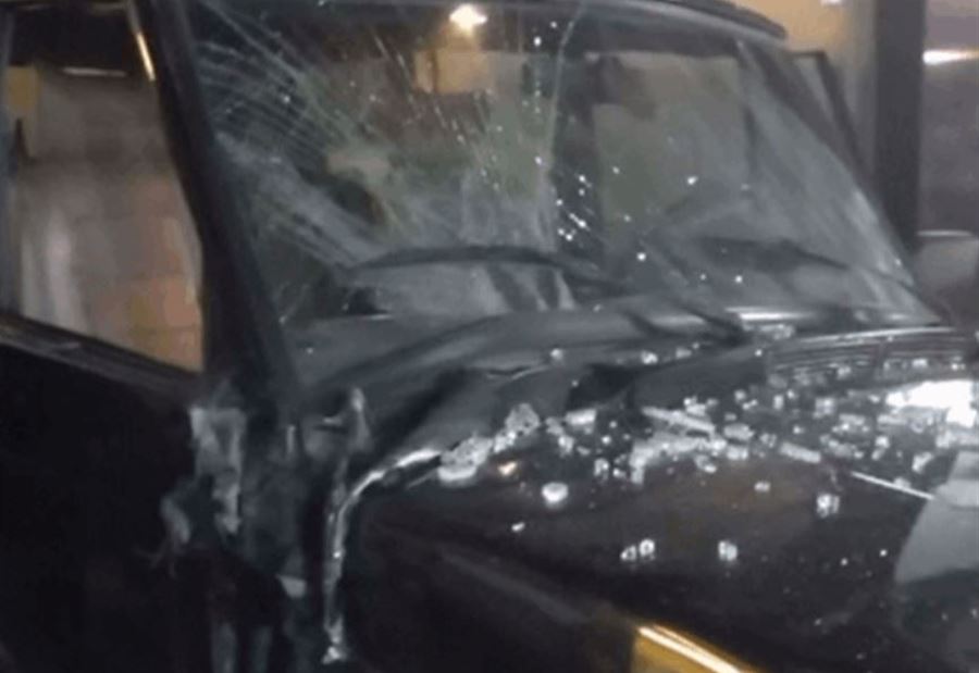 وفي التفاصيل, اصطدمت بسيارة مرسيدس كانت متوقفة إلى جانب الطريق، ما ادى إلى تحطم واجهة المحل الزجاجية.