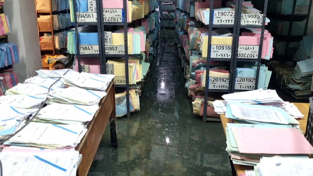 وإلى جانب الكهرباء، يعاني سقف النافعة من النشّ، ما يهدّد ملفّاتها بالتلف، اذ في مستودع الأرشيف، تتجمّع المياه بشكل دائم مع توقّف المضخّة عن شفطها جرّاء انقطاع التيار الكهربائي وعدم تشغيل المولد نتيجة الإضراب المفتوح أو حتى العطل أو العمل 3 أيام فقط، «فالنافعة تقوم على أرض فيها عين مياه – نبع متدفّق»، وفق ما أكّد سابقاً رئيس قسم تسجيل السيارات في صيدا عمر وهبي، «فيما الملفات لم تدخل عصر المكننة بعد وبالتالي اذا توقّفت مضخّة شفط المياه إلى الخارج قد تسبّب كارثة».