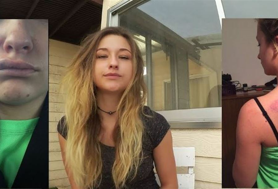 وأظهرت بريول في المقطع الفيديو صورًا لها بعد الحادث بها قضمة عضة بالظهر، ولكمة في الوجه، وفق زعمها.