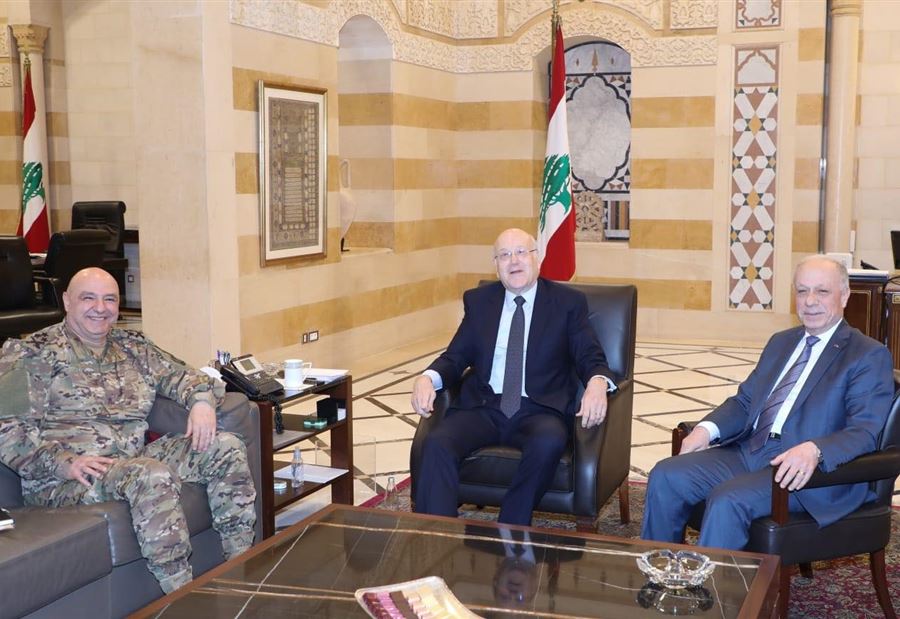 إجتمع رئيس الحكومة نجيب ميقاتي مع وزير الدفاع الوطني موريس سليم وقائد الجيش العماد جوزيف عون ظهر اليوم في السرايا.