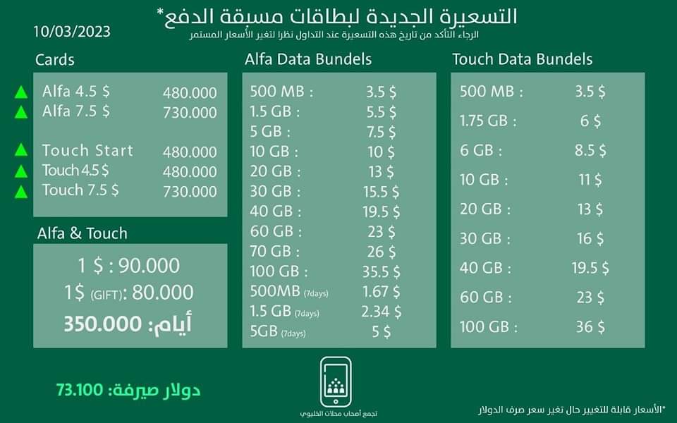 الأسعار الجديدة لبطاقات التشريج من ألفا و تاتش