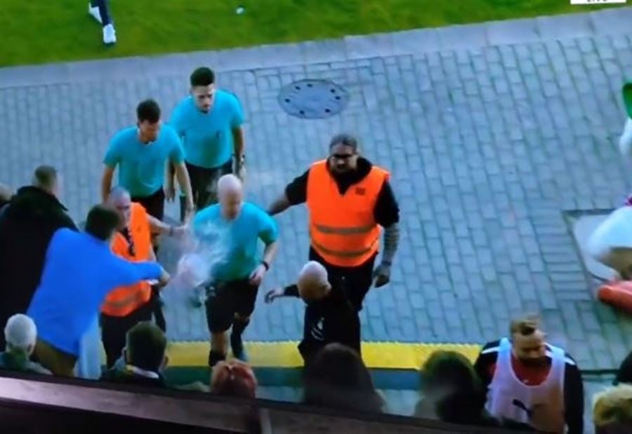 إنتظر المراقبون قبل مغادرة الملعب, أظهر تلفزيون "ماجنتا سبورت تي" في مشجعا يلقي الجعة على وجه الحكم.