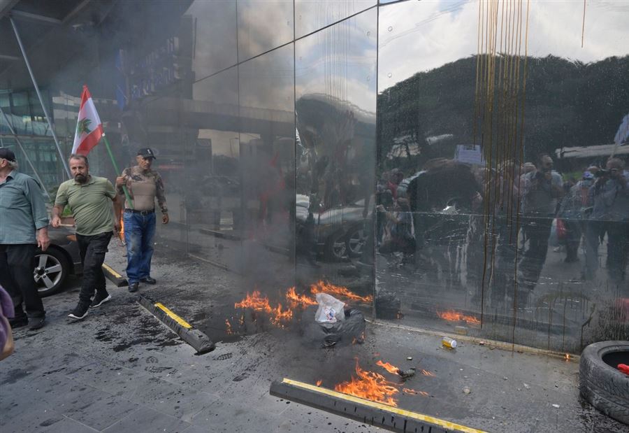 أقدم عدد من المحتجّين على تحطيم الواجهات الزجاجية لِعدد من المصارف في سن الفيل.