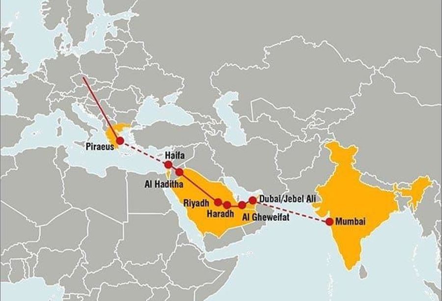 ممر اقتصادي من الهند الى اوروبا مرورا بالخليج والأردن واسرائيل، يستثني لبنان، تم توقيعه في قمة العشرين، ويتضمن سكك حديد، وشبكات اتصالات ونقل وأنابيب.
