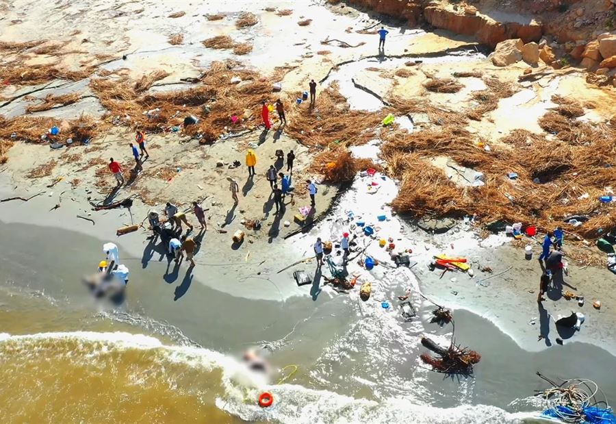 وشرح أن المنطقة أشبه بمنطقة حلّ بها انفجار هائل قسم شرقها عن غربها، حيث سحب المياه أبنية إلى عمق البحر.