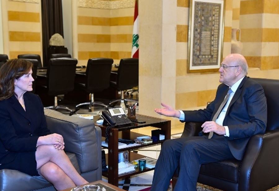 إستقبل رئيس حكومة تصريف الأعمال نجيب ميقاتي في السراي الحكومي، السفيرة الأميركية في لبنان دوروثي شيا.