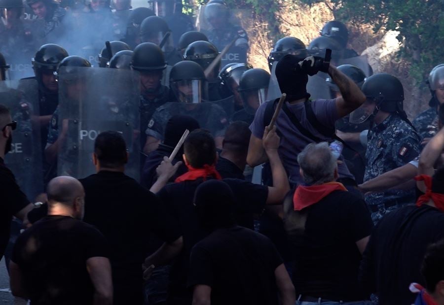 يقابلها قنابل مسيلة للدموع لإبعاد المتظاهرين