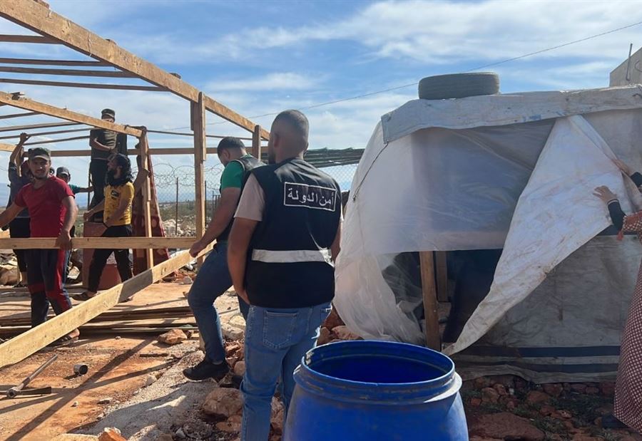 أفاد مصدرٌ في أمن الدّولة، أنّ "حملة إزالة الخيم هذه، أتت لمكافحة الفوضى المستشرية بين النازحين، وبسبب الشبهات بانتمائهم إلى منظّمات إرهابيّة، صادرت خلالها أمن الدّولة حتّى اليوم، كمّيّات كبيرة من الأسلحة الحربيّة في خيمٍ تعود إلى النازحين السوريّين، في مختلف المحافظات".