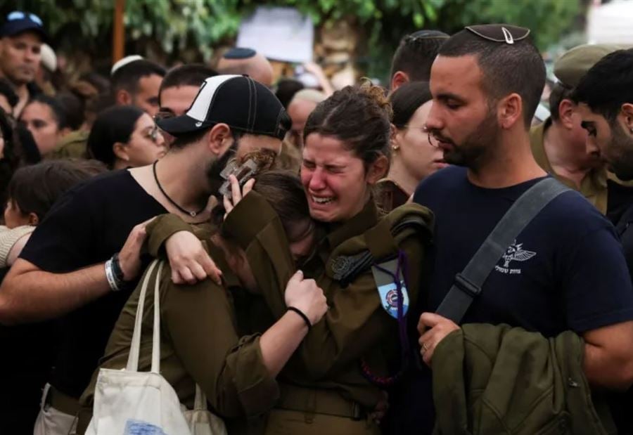 أما في موديعين-مكابيم-ريعوت الواقعة قرب الجدار الفاصل، فظهر العديد من المدنيين والعسكريين الإسرائيليين في مشهد ألم وبكاء أثناء تشييع الجندي عدي ليون الذي قُتل في العملية البرية في قطاع غزة أمس الأربعاء.