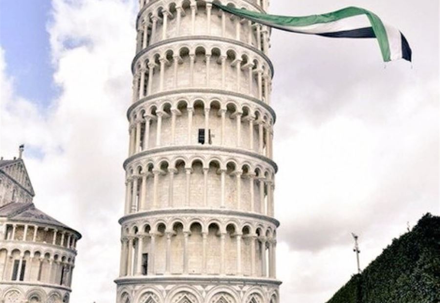 علق ناشطون مؤيدون لفلسطين، العلم الفلسطيني على برج بيزا المائل الشهير في إيطاليا، تعبيرًا عن رفضهم لعدوان الجيش الإسرائيلي وجرائمه المروعة بحق أهالي قطاع غزة.