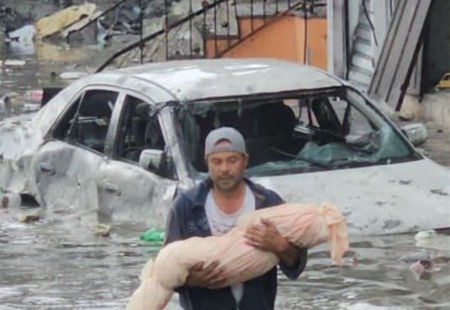 وفي مشهد مماثل، انتشرت صورة أخرى تظهر شاباً فلسطينياً وهو يحمل جثة طفل أو طفلة صغيرة، بينما يصارع المياه التي غمرت الشارع.