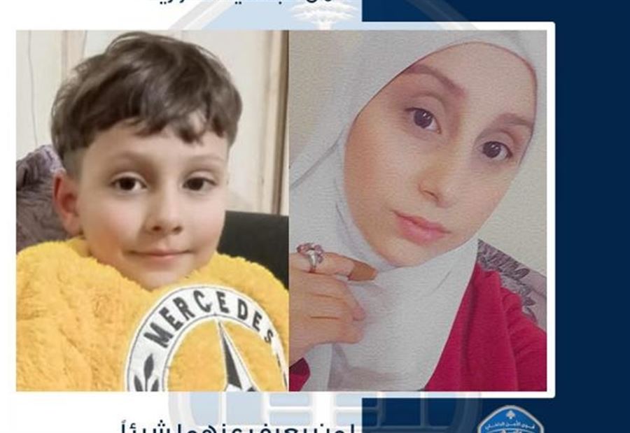 صدر عن المديرية العامّة لقوى الأمن الدّاخلي - شعبة العلاقات العامّة، اليوم الاربعاء، بلاغ جاء فيه: "تُعمِّم المديريّة العامّة لقوى الأمن الداخلي بناءً على إشارة القضاء المختص صورة المفقودَيْن القاصرَيْن: ليلاس انس زيدان (من مواليد عام 2007، سورية)، محمد يحيى انس زيدان (من مواليد عام 2016، سوري)".