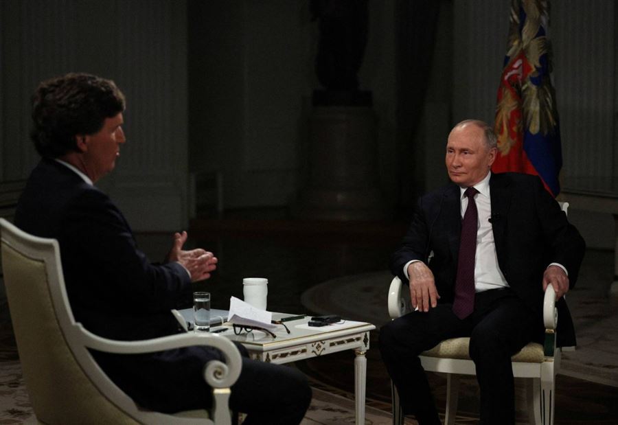 وقد حاول الصحفي الأميركي تاكر كارلسون أن يمسك مفاتيح الحوار مع الرئيس فلاديمير بوتين فاستخدم أسلوبه المفضل في بدء الحوار بتوجيه سؤال صادم يخل بتوازن محاوره.